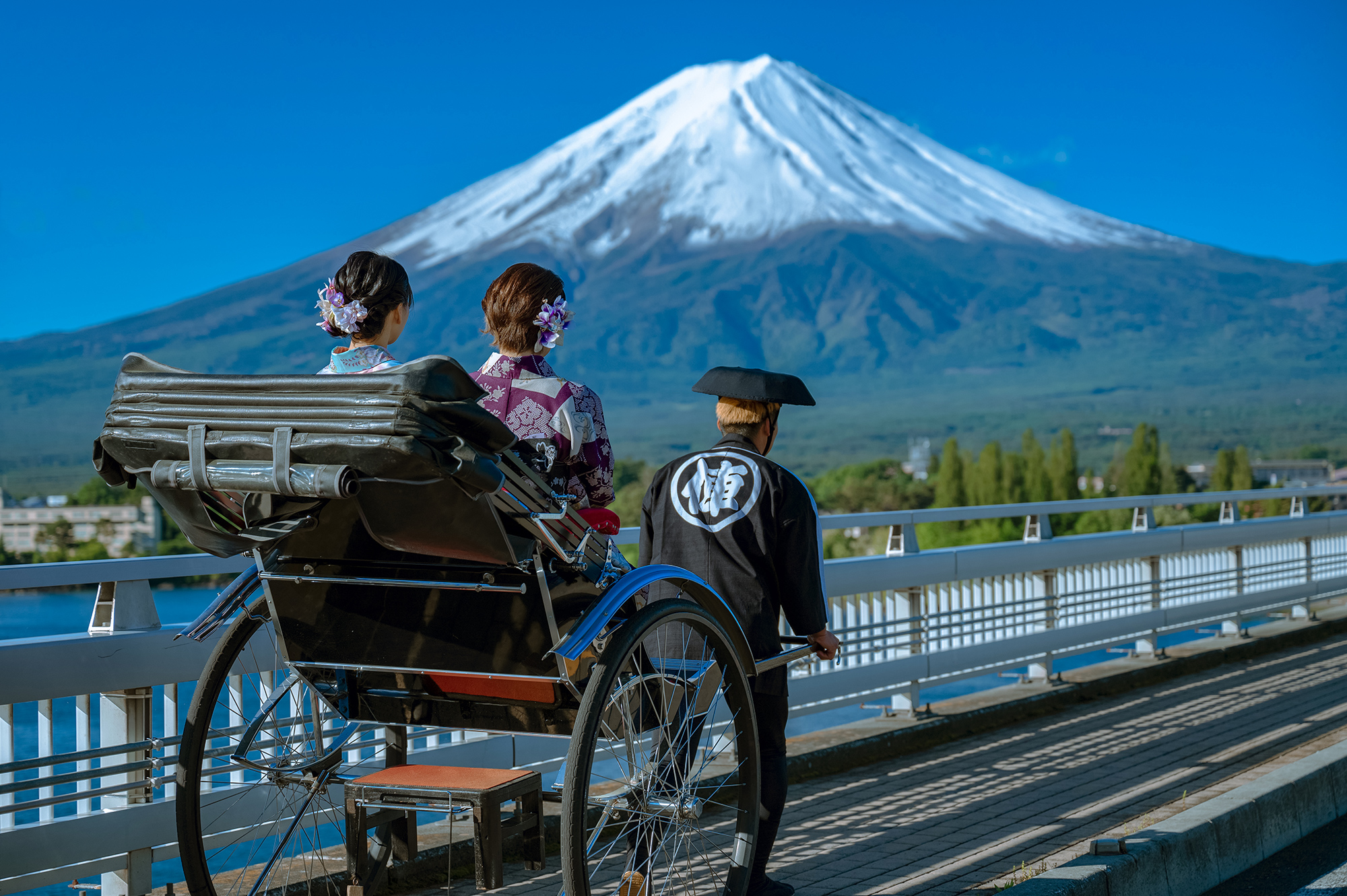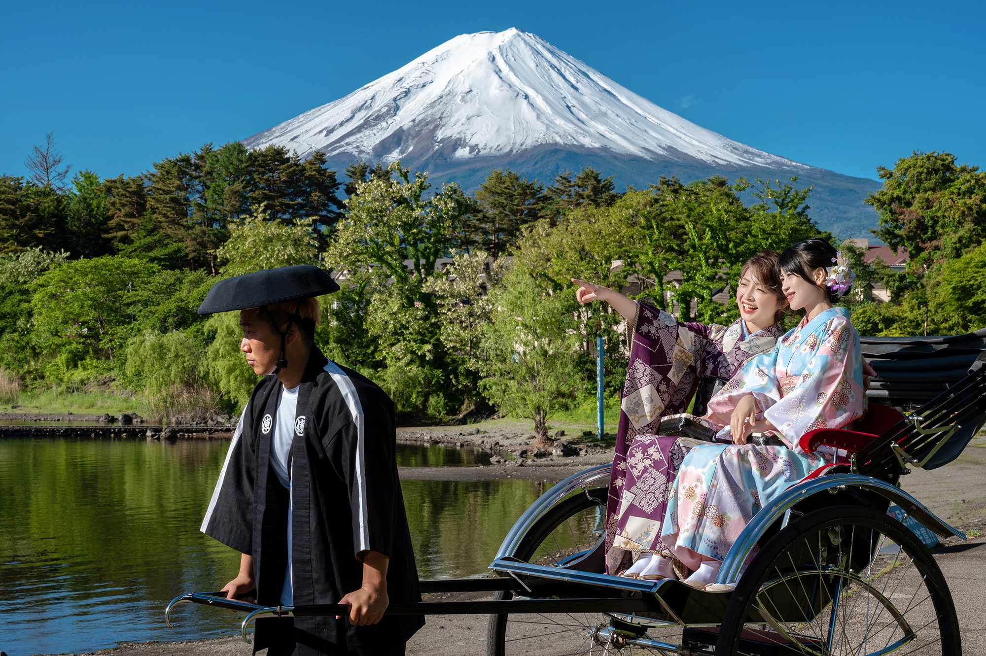 富士山の麓で走る人力車の富雅屋